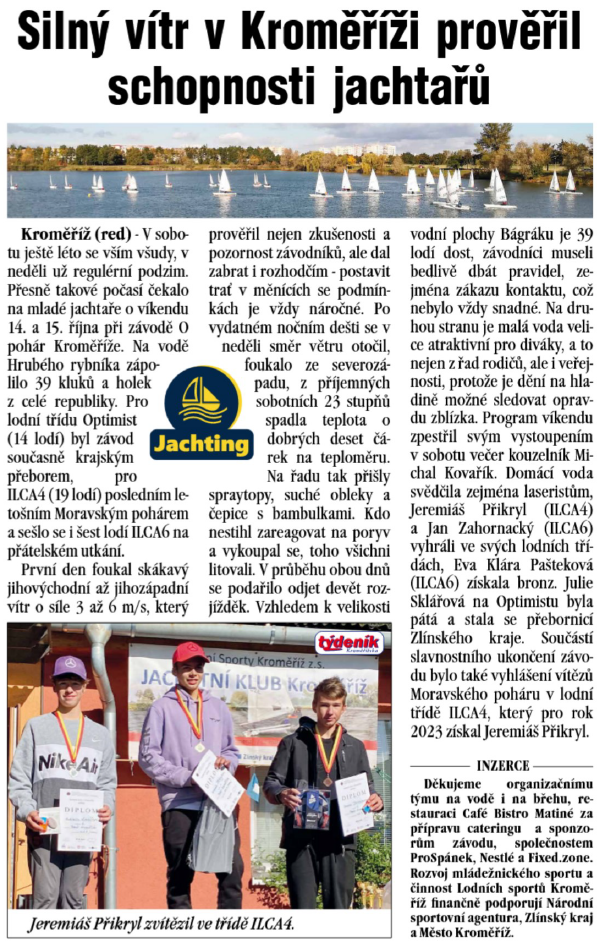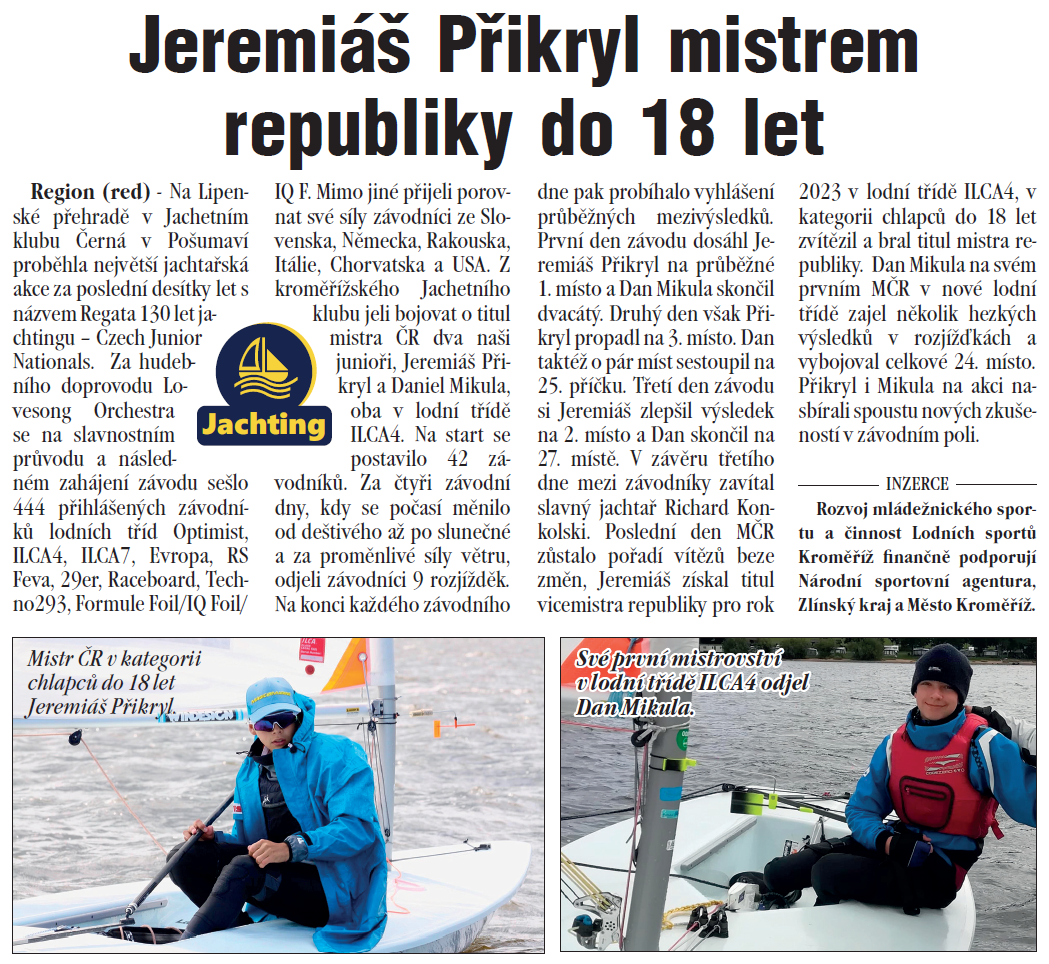 28. ročník České námořní rallye, který byl zakončen teprve před několika hodinami v chorvatské Kaštele nedaleko Splitu nám přinesl velkou radost Na palubě vítězné lodě v kategorii First 45 byl totiž také Michal Daněk, člen našeho klubu a trenér našich mládežníků!Závod odstartoval v neděli 13.10. a posádka lodě číslo 11 "Autolaky Hrubý" s kapitánem...